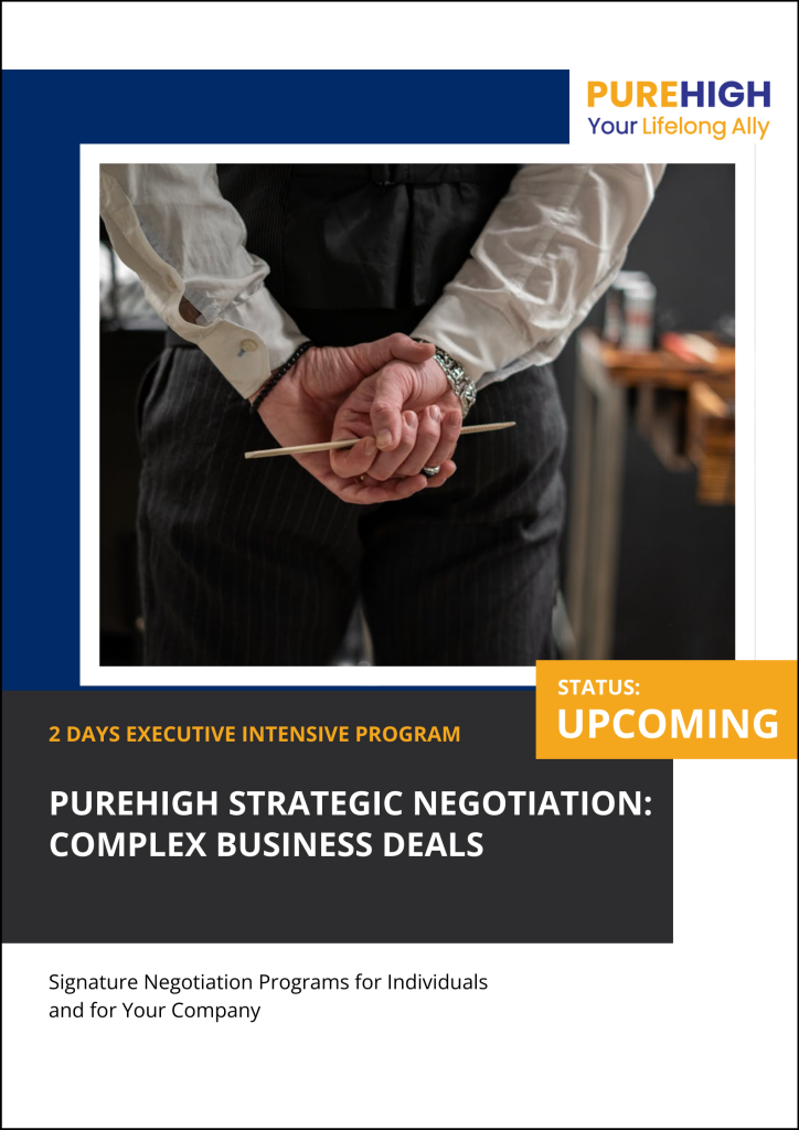 Unlike traditional “sales negotiation” or “price bargaining”, PureHigh approaches negotiation as a multi-dimensional discipline of preparation, value creation, conditional trading, and implementation alignment.